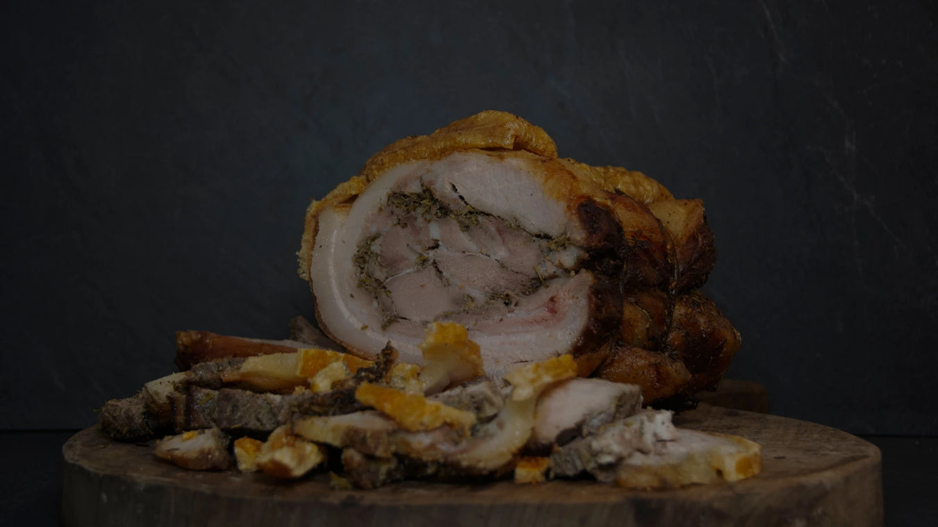La nostra porchetta artigianale: lenta cottura, crosta croccante, carne morbida e aromi naturali.