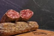 Il salame di suino razza senese si distingue per il suo gusto delicato e aromatico, la sua consistenza morbida e compatta, e la sua caratteristica forma leggermente bombata. La carne utilizzata per questo salame proviene dai suini di razza cinta senese, una razza pregiata allevata in modo tradizionale e alimentata principalmente con cereali e prodotti naturali.